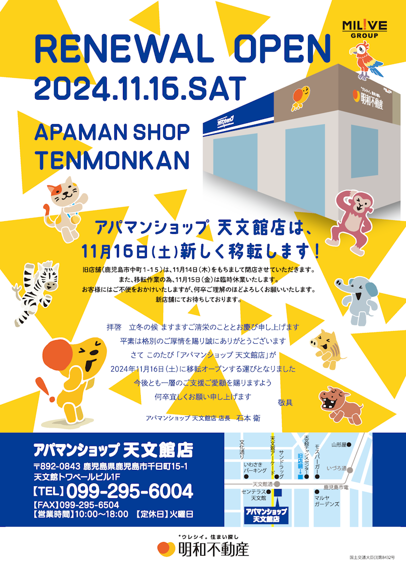 アパマンショップ天文館店が、2024年11月16日(土)より移転オープンいたします。