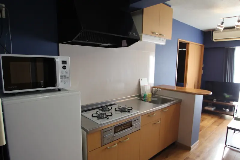 | 調理器具 | ・ 食器一式 ・ 割りばし ・ フライパン ・ 片手鍋 ・ お玉 ・ フライ返し ・ 包丁・まな板 ・ 缶切り ・ 栓抜き ・ 食器用洗剤 ・ スポンジ ・ スポンジ入れ ・ ゴミ袋 ・ ふきん ・ つまようじ ・ 三角コーナー |